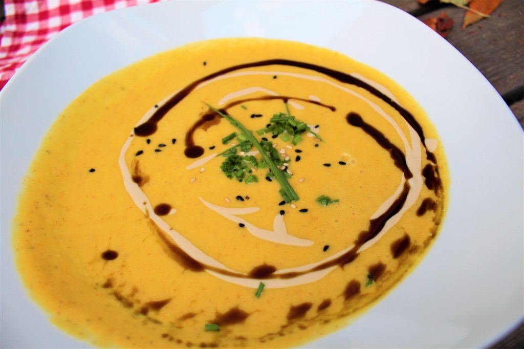 Die letzten Wochen habe ich saisonbedingt ziemlich viel Kürbiscremesuppe gemacht und recht lang an diesem Rezept gefeilt. Das Ergebnis ist eine perfekte cremige, nicht zu dickflüssige Suppe, die satt macht, aber ganz ohne Schlagobers ist.
